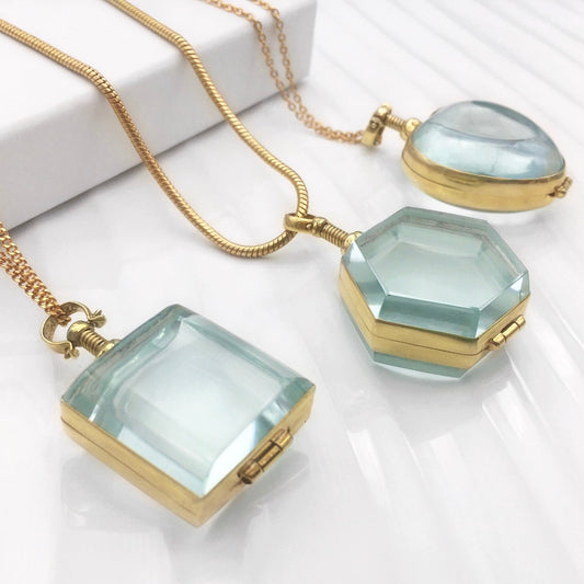 Large Gold Plated Glass Lockets- Choose a Shape