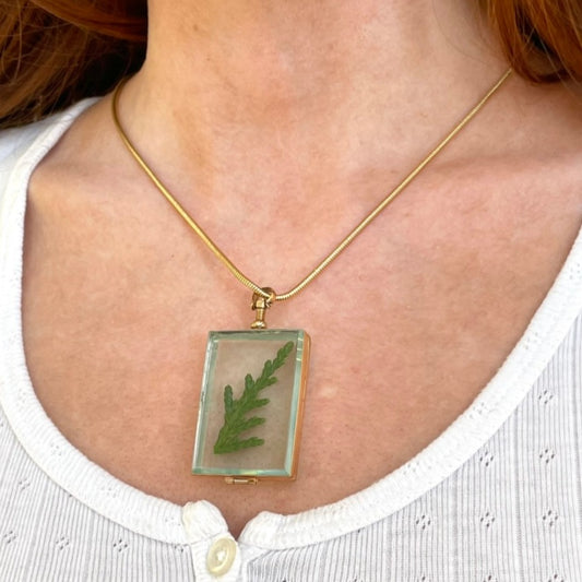 Square Shaped Gold Plated Glass Locket