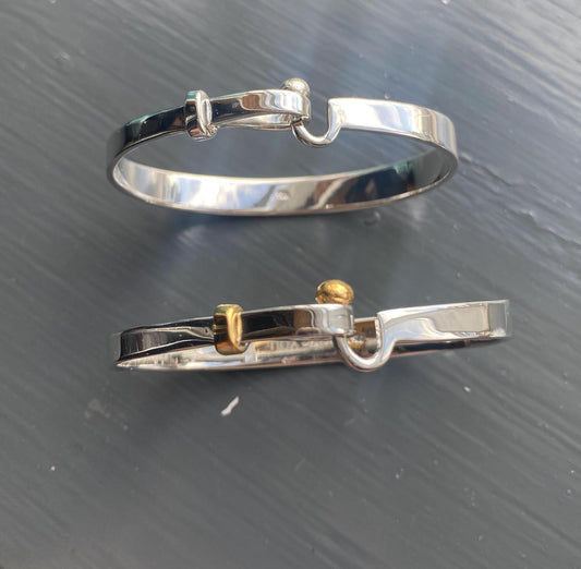 Gold Vermeil Trim Large Size Silver Hook Clasp Bangle