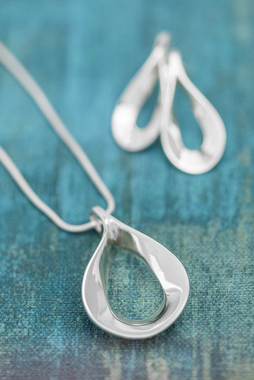 Flat Teardrop Sterling Silver Necklace and Earring Set