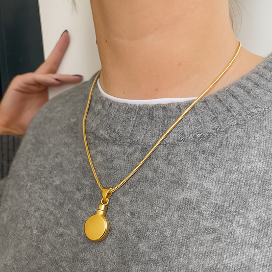 Gold Vermeil Circle Urn Pendant – Round Ashes Necklace