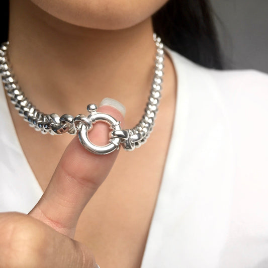 Alternating Links Sterling Silver Belcher Chain Necklace