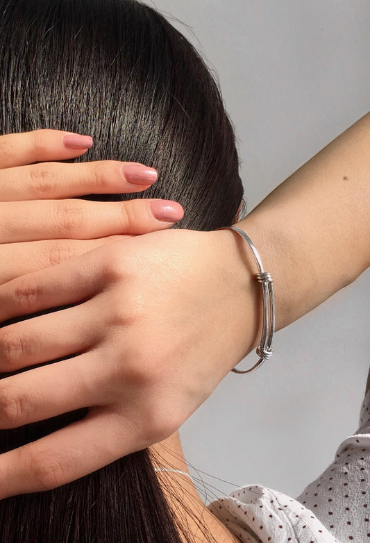 Slanted Cindy Silver Small Wrist Bangle Bracelet