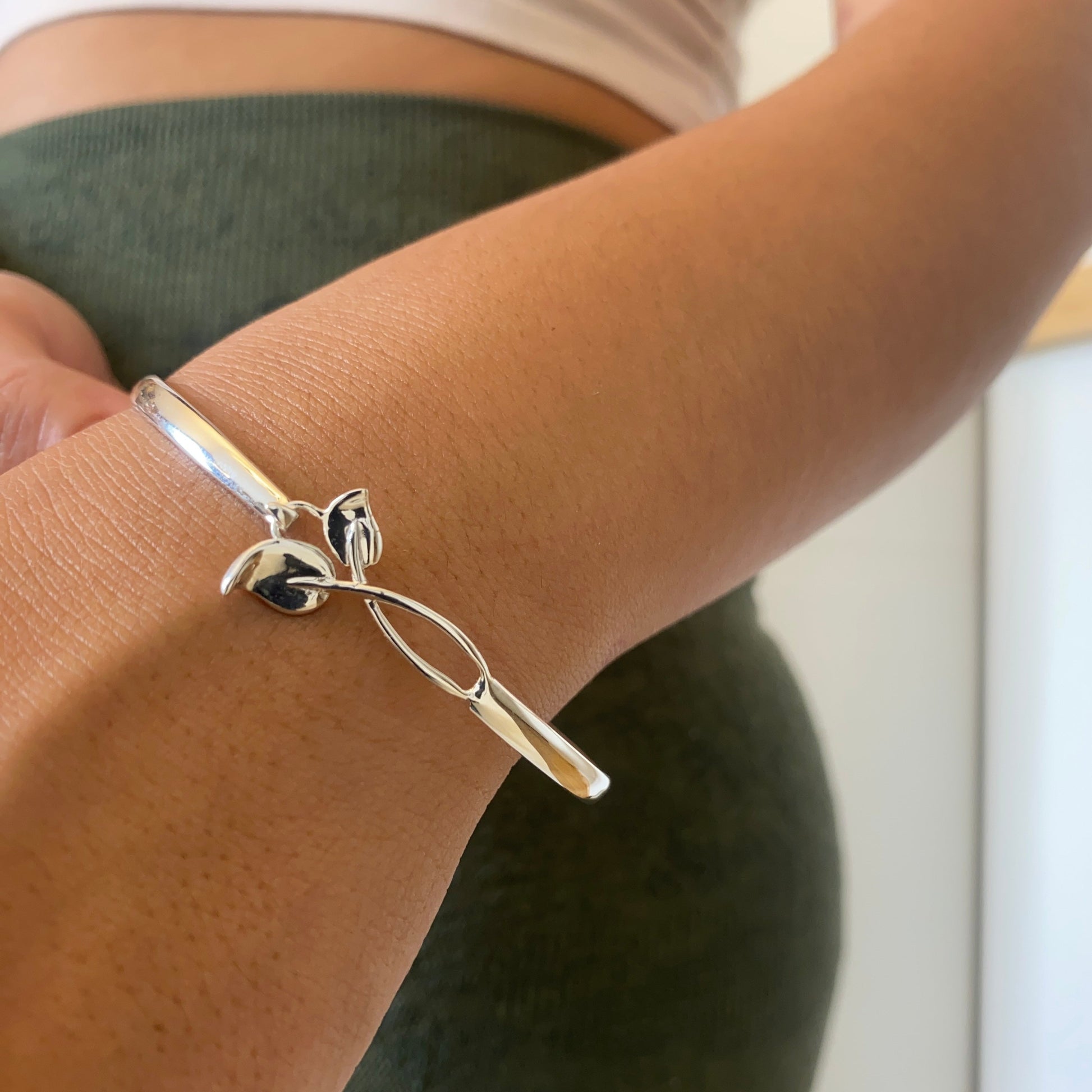 This nature inspired bangle adds a delicate touch of beauty to your wrist. The perfect feminine, elegant and simply stunning bangle with soft curves and the ideal fit for each wrist.