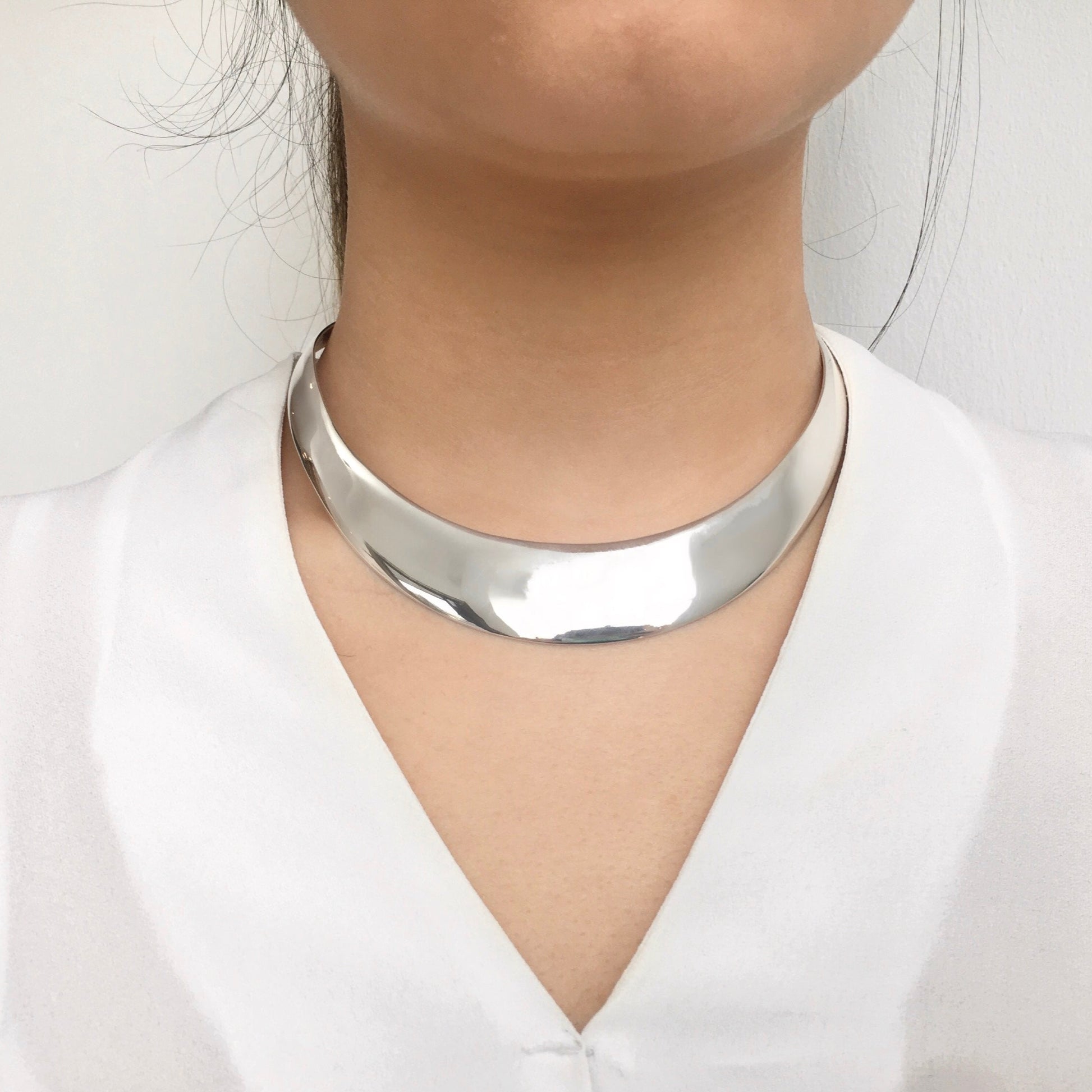 This silver torque necklace has the ability to add something truly amazing and empowering to your appearance. With soft, feminine flowing curves this silver choker necklace encapsulates the feminine form. Our silver choker collar necklace represent one's personality, an expression of individuality and the female beauty that is in abundance in this world.